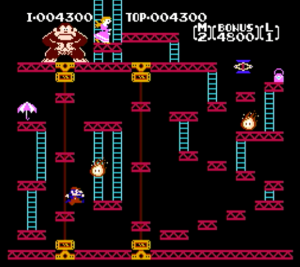 ・マリオは高所から落ちるとゲームオーバーなので足場とエレベーター部分はジャンプして移動する