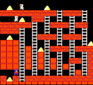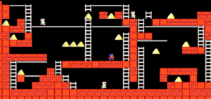 ・ロボットを穴に落とすことが難しいので、穴を掘ってプレイヤーが逃げるほうが金塊を集めやすい