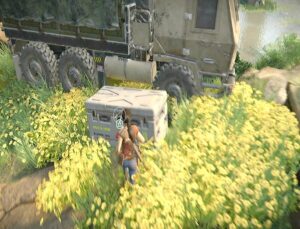 ・傭兵達が待ち伏せている遺跡右側にある滝の前にあるトラックの荷台の上